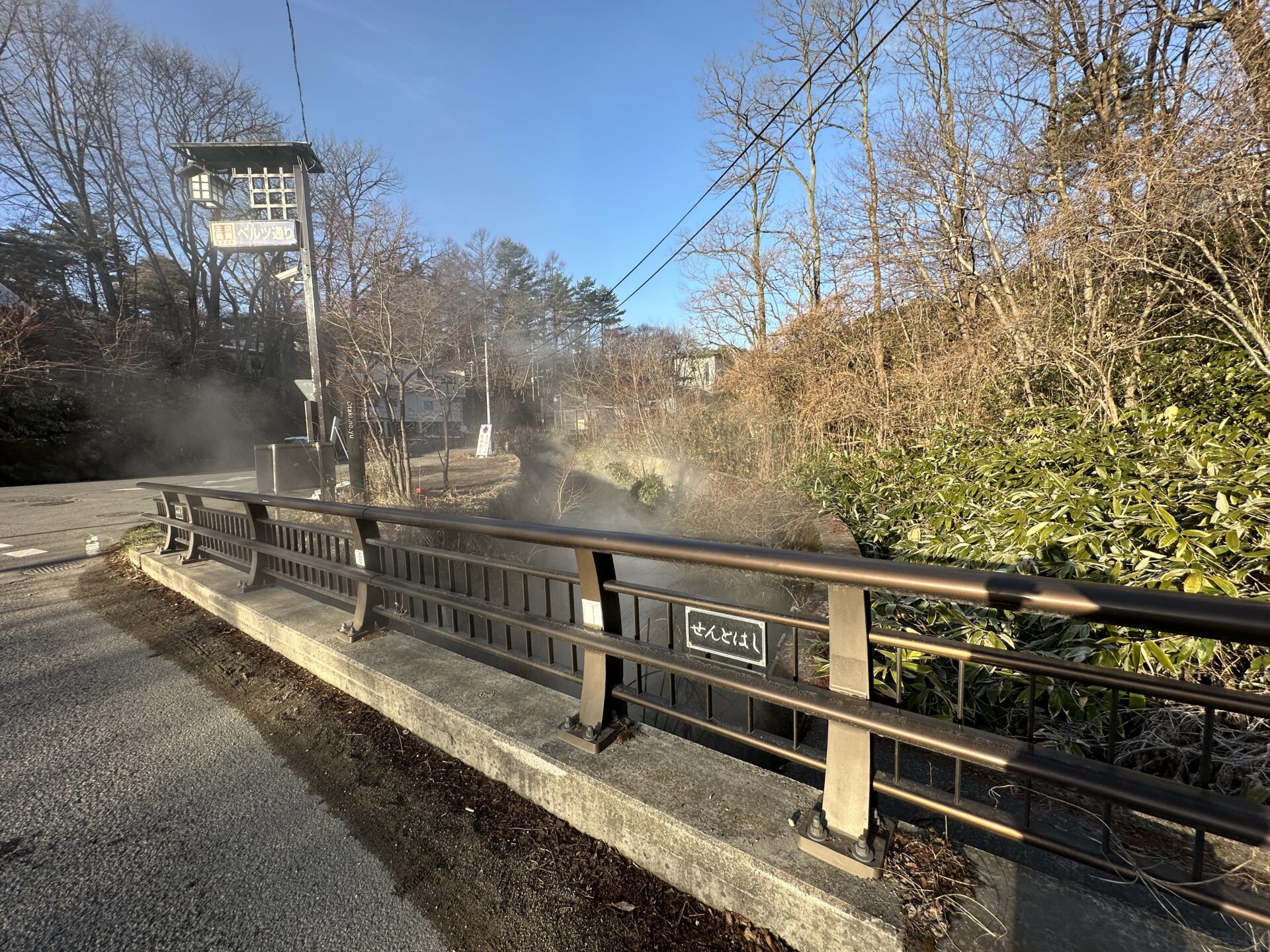 草津温泉の温泉水が流れ込む「湯川」に架かる橋です。