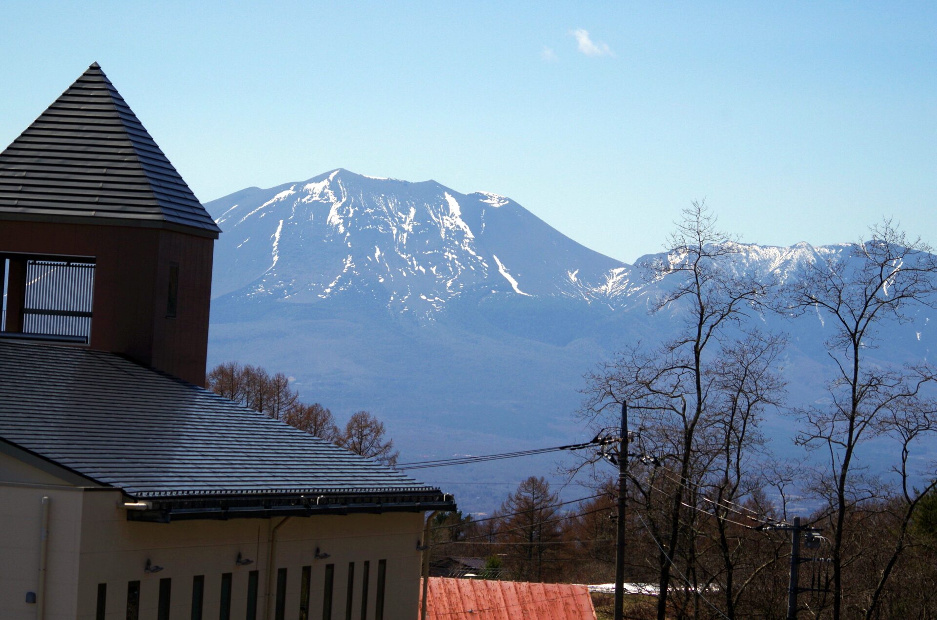冬の間は真っ白に冠雪していた浅間山ですが