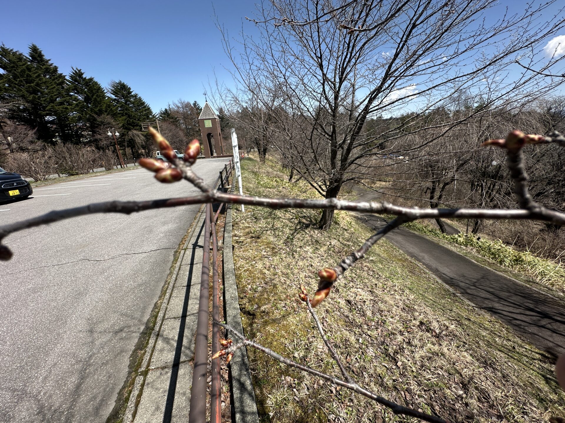 道の駅周辺を散策してみると、桜の木には小さな蕾がふくらみ始めている様子が見られました。