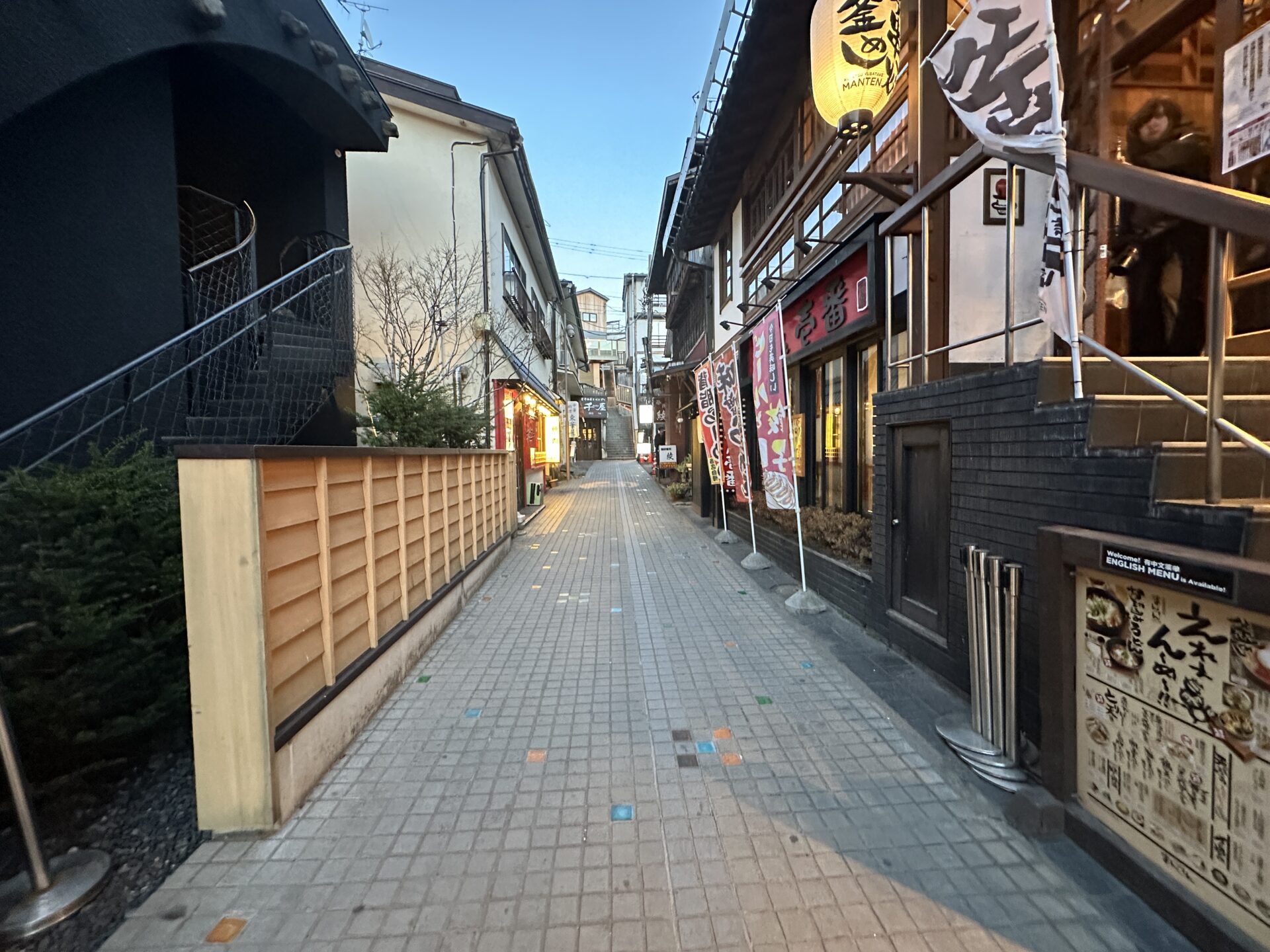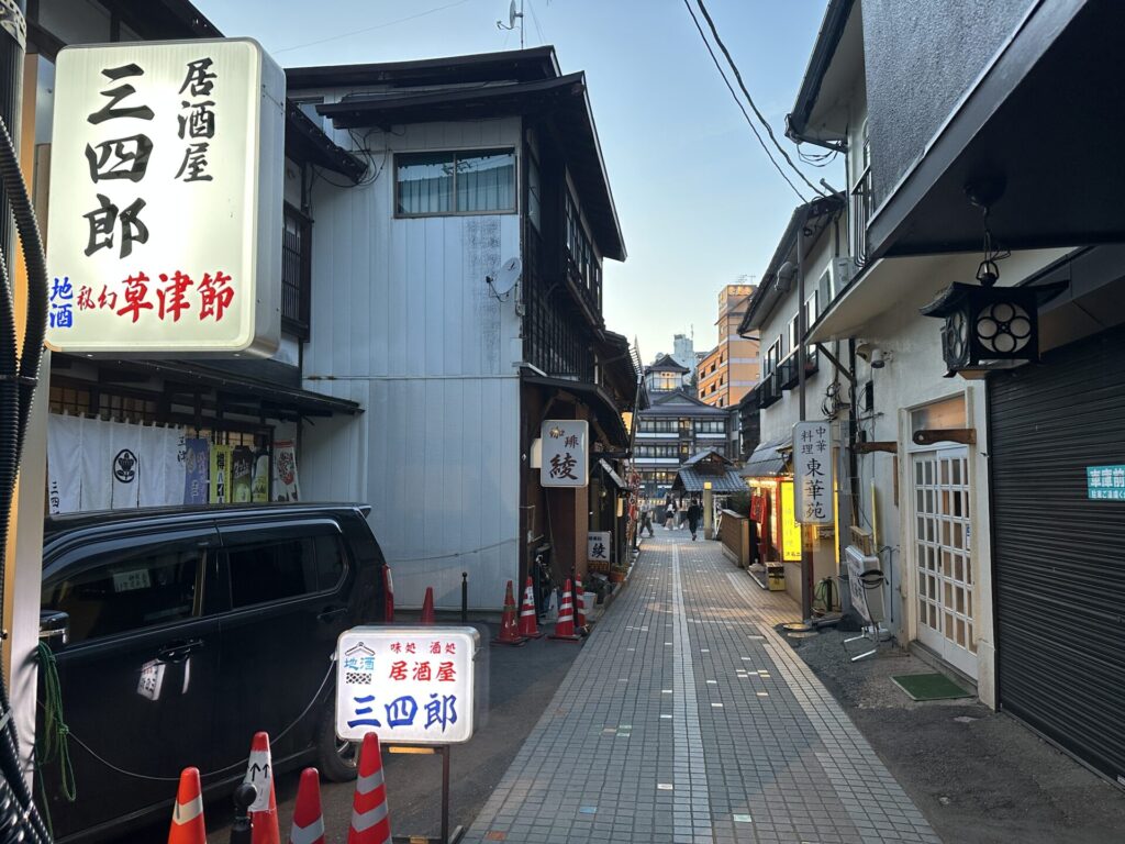 裏草津へ向かう道は、雰囲気のある飲食店街になっています。