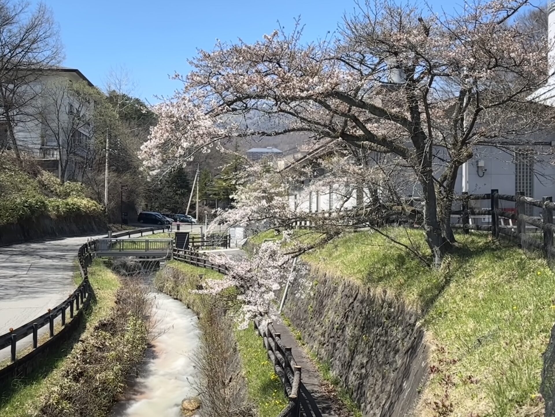 ここは草津温泉の中でも、比較的早く桜が咲くことで知られている場所です。