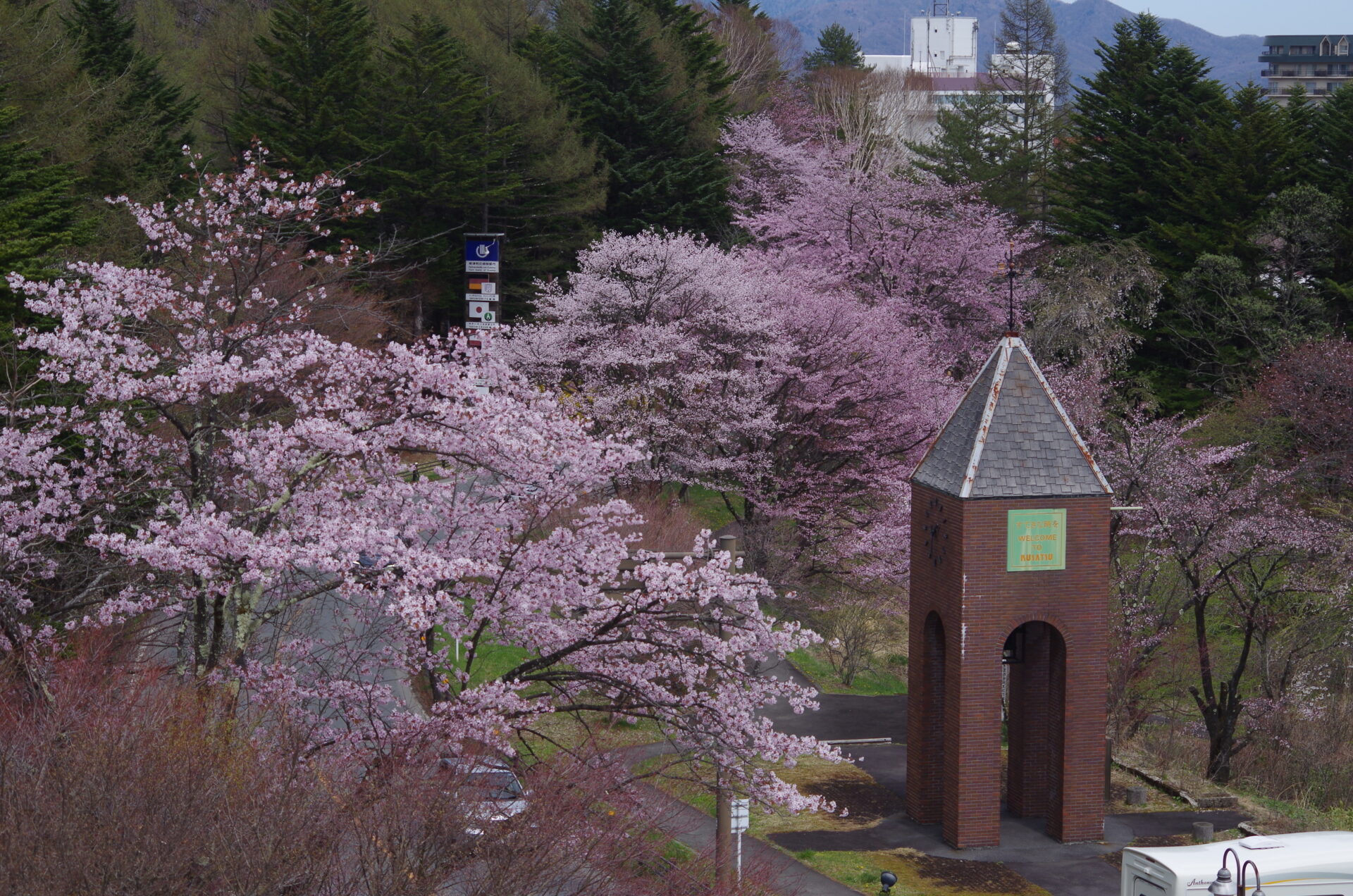 草津スカイランドホテルのお庭でも、桜が満開となりました。