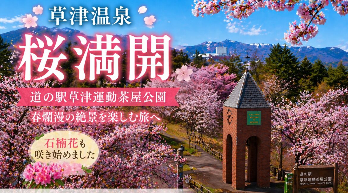 草津温泉の桜が満開!道の駅草津運動茶屋公園は春爛漫の絶景