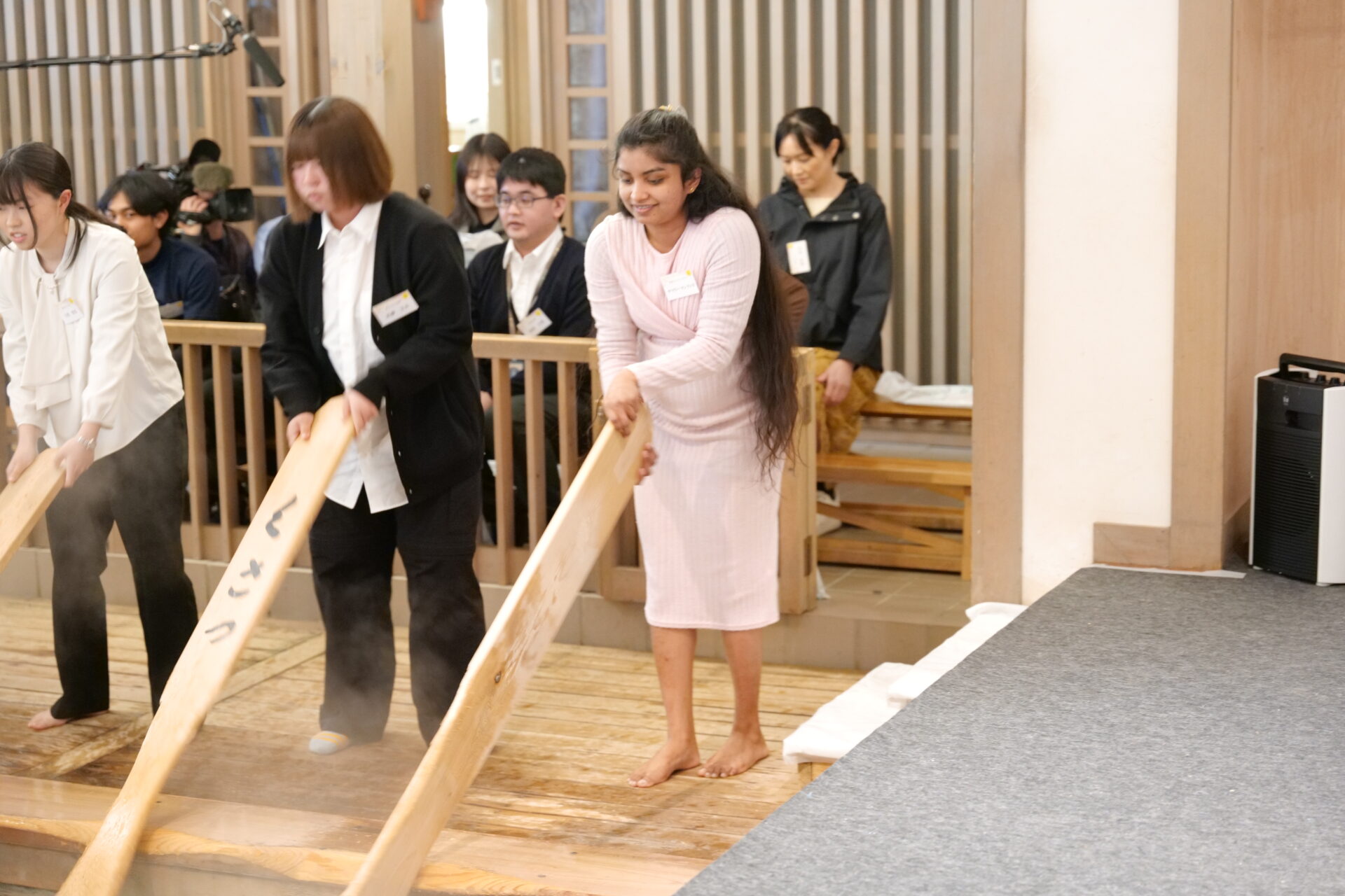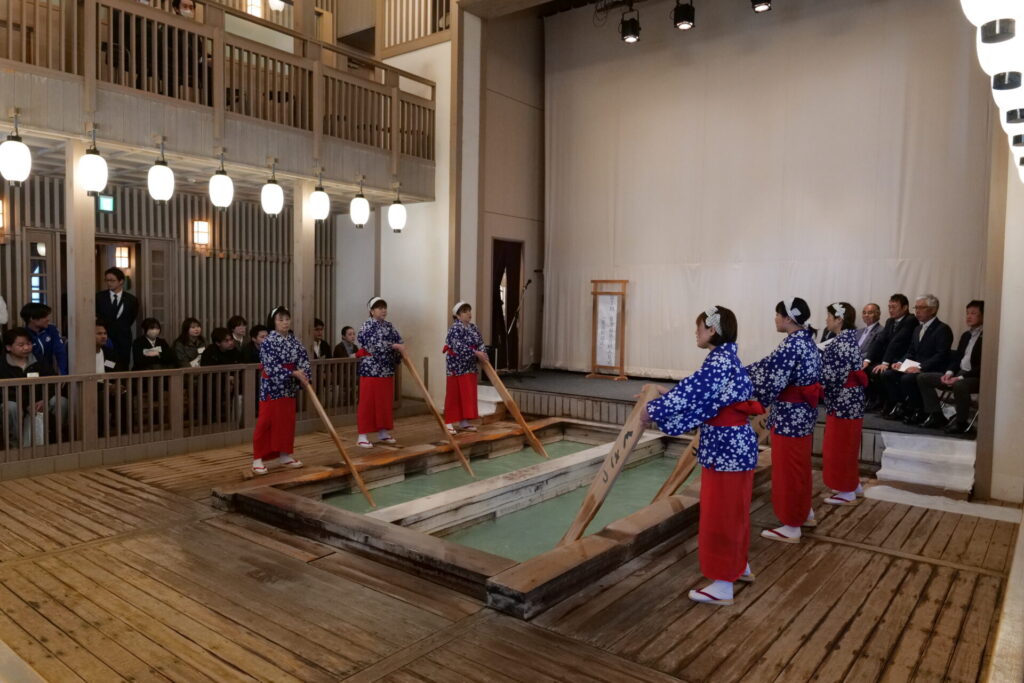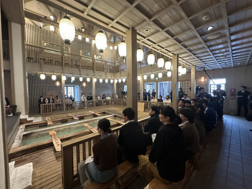 入社式の後には、草津温泉の伝統文化でもある「湯もみ体験」が行われました。