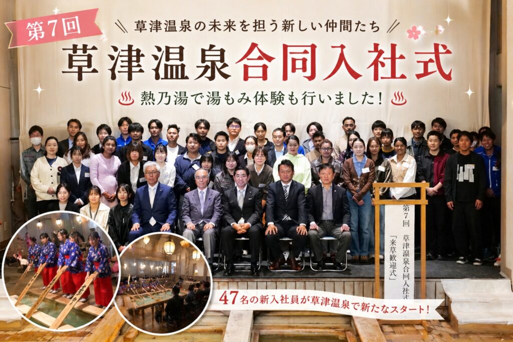 草津温泉の旅館や観光関連施設に新しく入社した新入社員47名が一堂に会し、