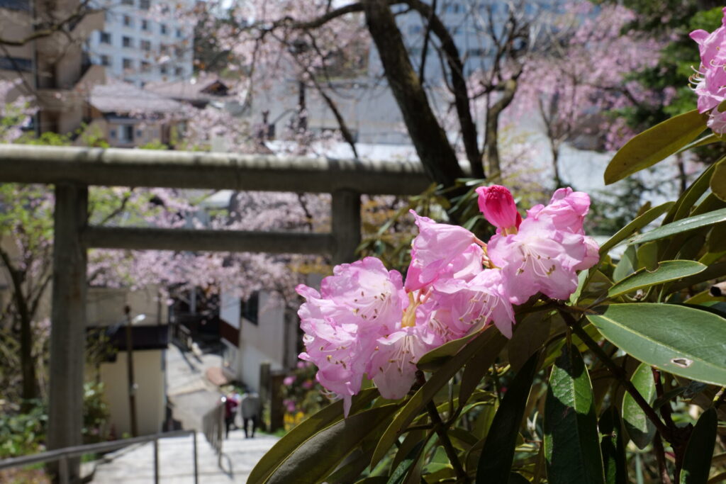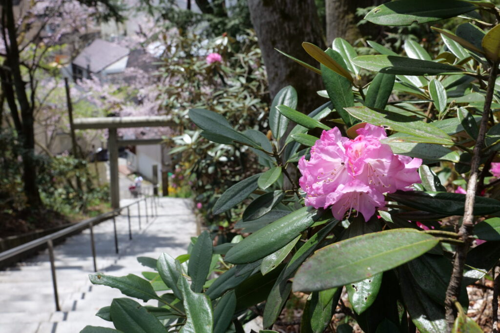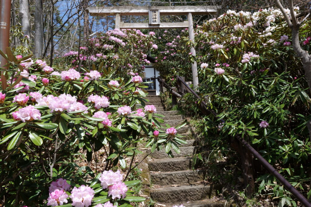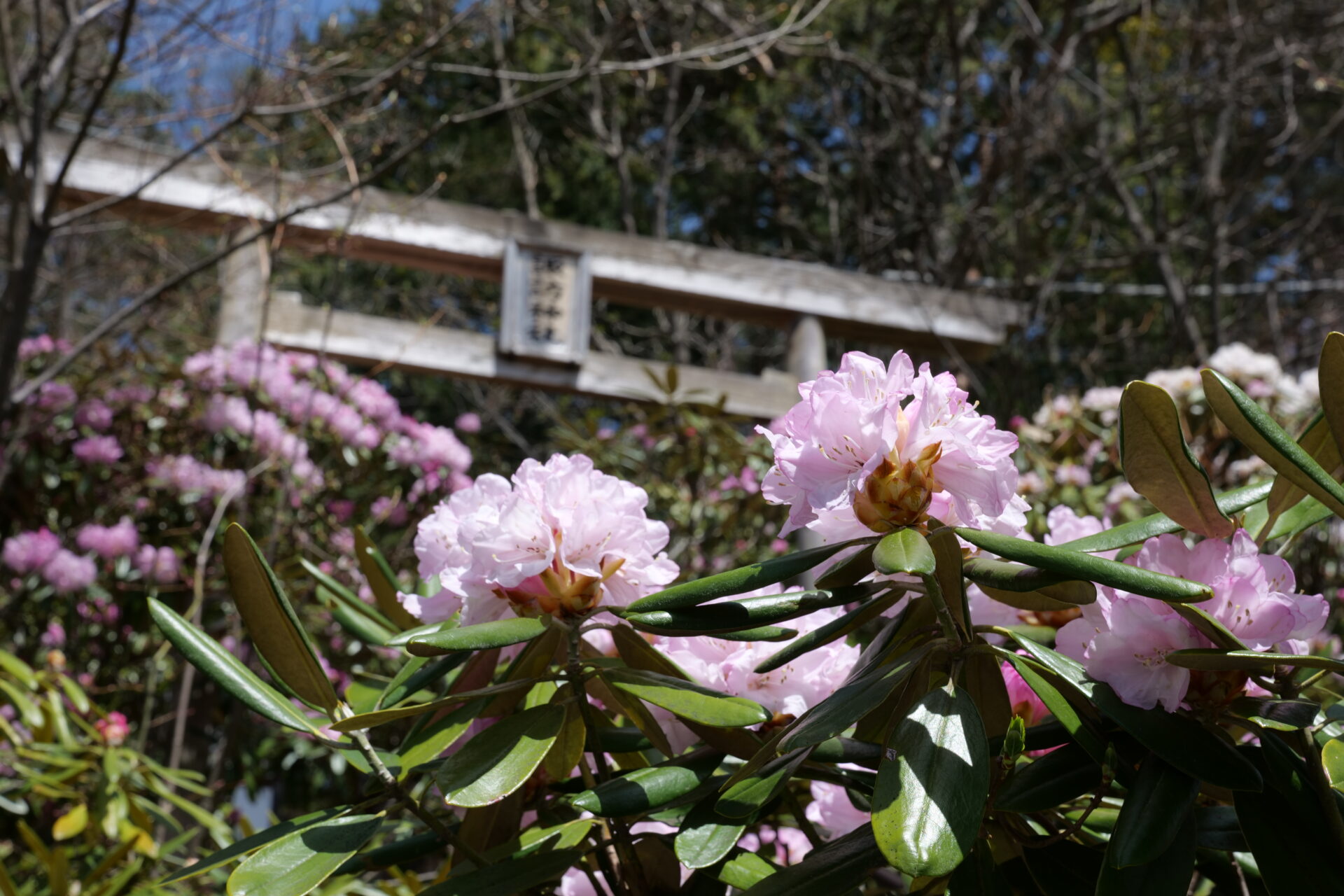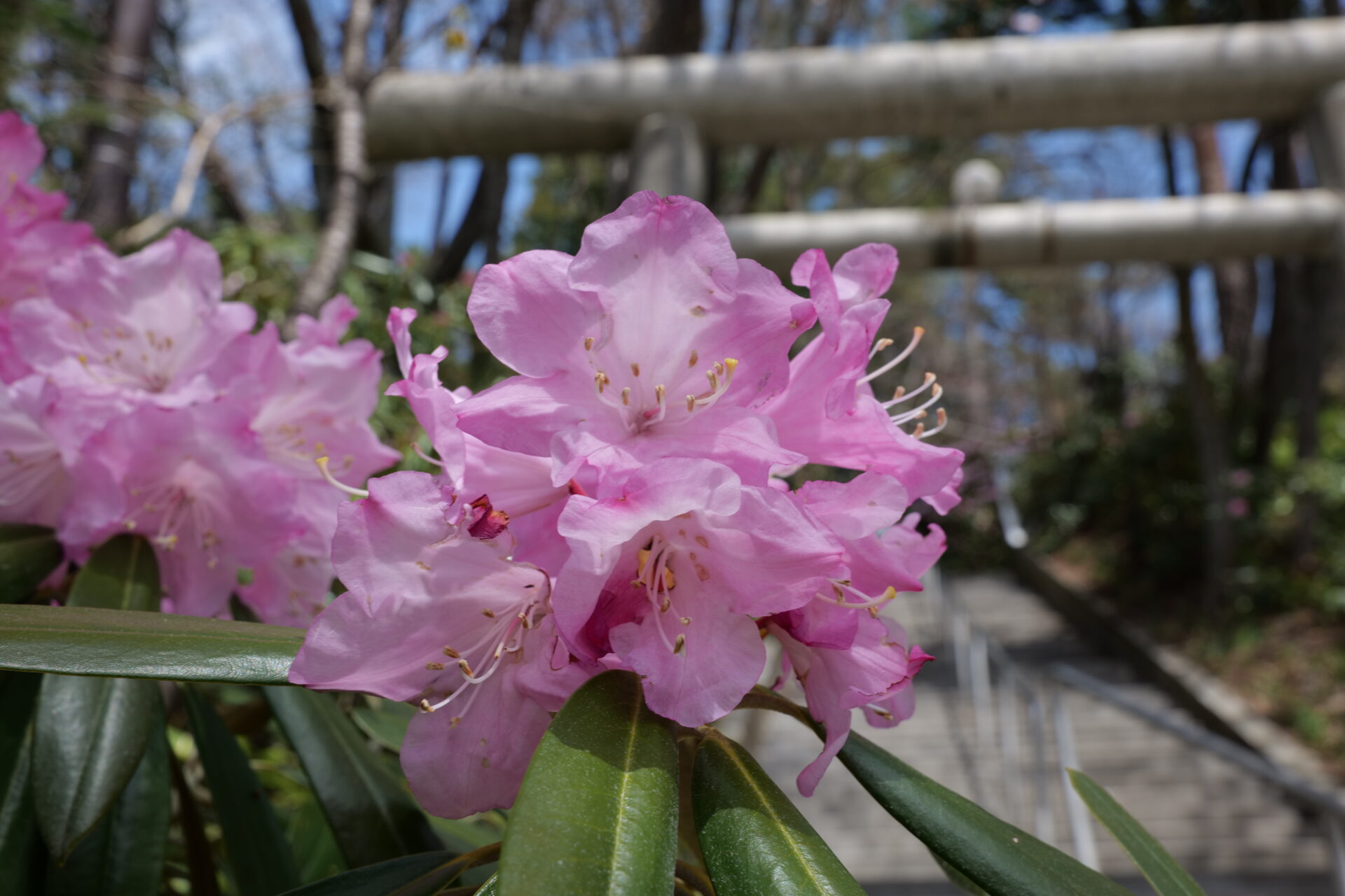 鳥居と石楠花が織りなす風景は、とても美しく、