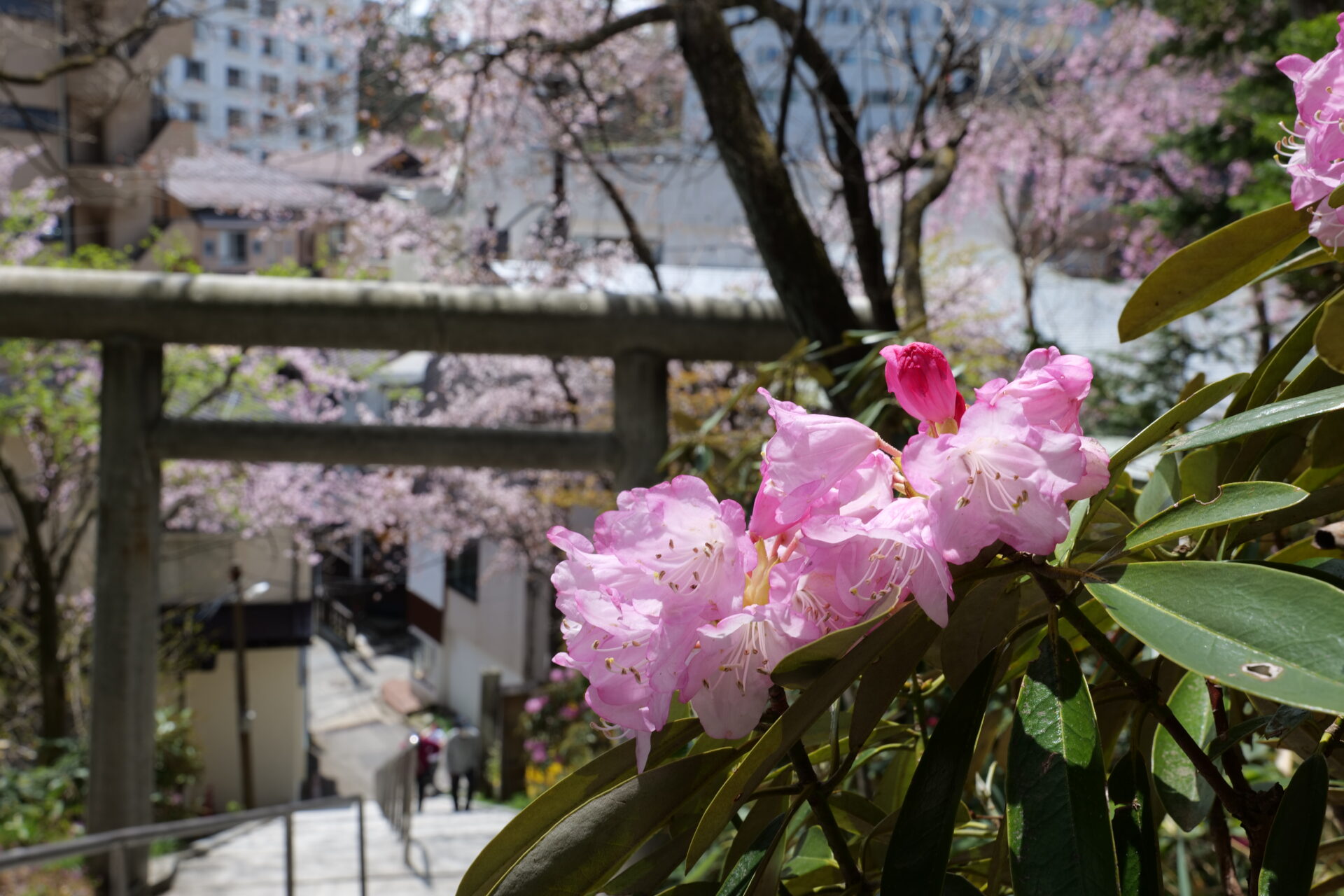 草津温泉の街中では、石楠花(しゃくなげ)の花が