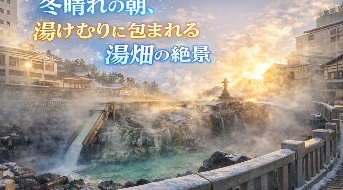 氷点下が創り出す絶景。冬夜の湯畑ライトアップ散策
