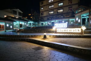 冬の湯畑が幻想の舞台に☆彡湯けむりと光のイルミネーション散歩