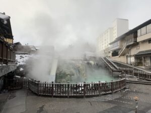 平日早朝のご褒美 湯けむりに包まれる冬の湯畑
