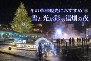 氷点下の夜に輝く名所 冬限定・湯畑ライトアップ散策 2026年1月11日撮影