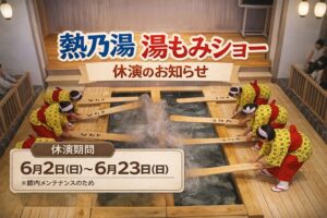 熱乃湯「湯もみと踊り」ショー休演のお知らせ(2026年6月2日~6月23日)